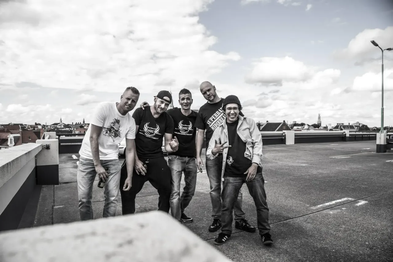 オランダ・ハーレム ハードコア・テクノのチーム(HDC)との1枚(写真提供=原田 篤)