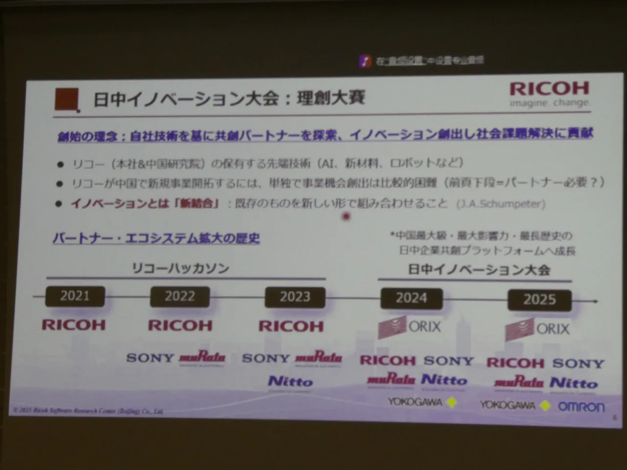リコーが主導する共創の取り組みは、2021年にリコー単独のハッカソンとしてスタートした。「最初は『リコーハッカソン』という形で始めましたが、この考え方に賛同する企業が徐々に増えていきました」(藤本さん)
