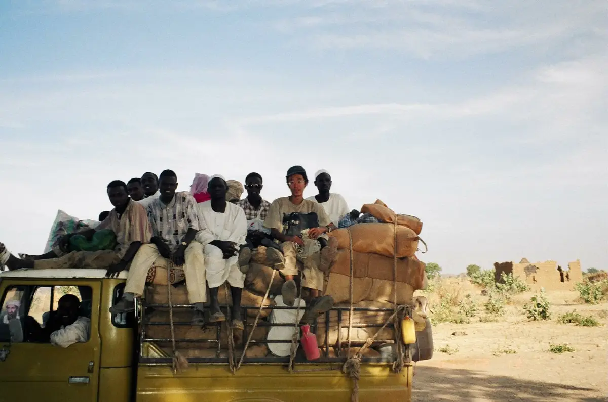 2001年、スーダンからチャドへトラック荷台で移動中(写真提供=品田諭志)