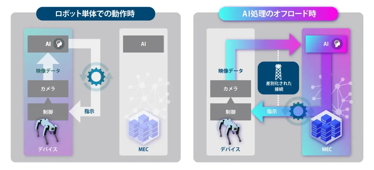 今回の実証では、軽量な処理はロボット側で行い、高度な判断が必要な瞬間だけをMEC基盤へシームレスに委ねることで、ハードウェアの限界を超えた柔軟な動作が可能であることを証明した。