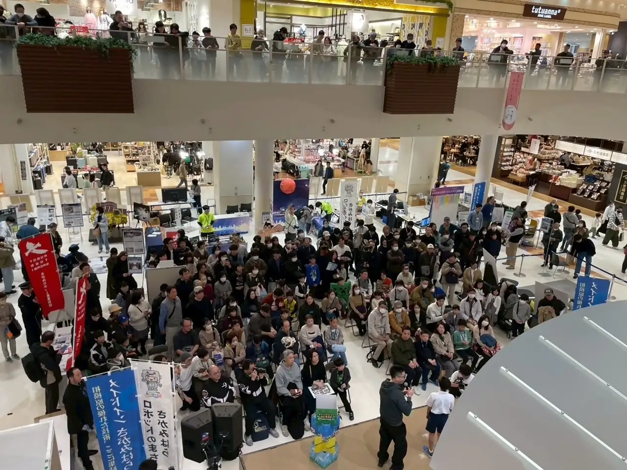 会場を沸かせたのは、最先端技術の圧倒的な「手触り」だ。JAXAブースでは、実際に月面へと降り立った変形型月面ロボット「SORA-Q」の操縦体験が実施され、子どもたちは宇宙探査の最前線を自らの指先で体感した。また、鹿島建設による四足歩行ロボットや、ファナック株式会社、株式会社ノジマといった企業の技術が、商業施設の通路という身近な場所で披露された。