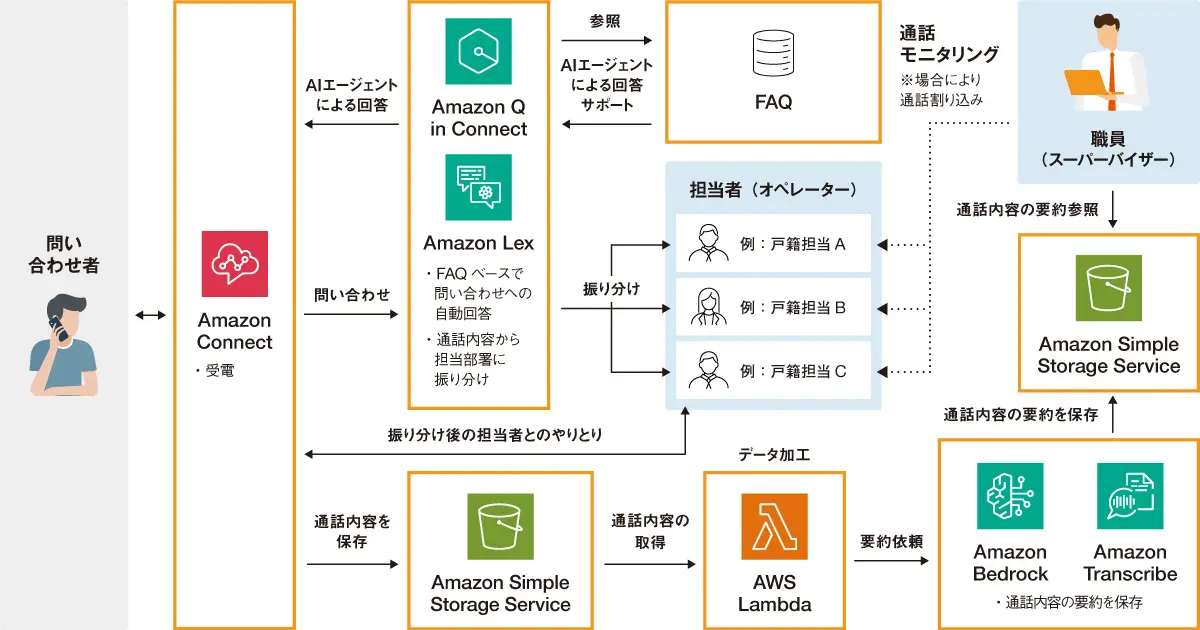 品川区戸籍住民課を舞台に開始された今回の実証実験は、ソフトウェアテストと品質保証の国内大手であるSHIFTが、アマゾン ウェブ サービス(AWS)のマネージドサービスを統合して構築した次世代型コンタクトセンターの検証である。核となるのは、高度な生成AI技術を用いたAIエージェント「Amazon Q」の活用だ。